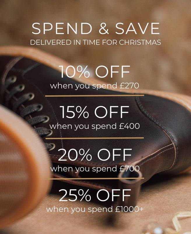 Every pair of GORAL shoes is handmade to order in our Sheffield workshop, crafted carefully by our small team of skilled shoemakers. As we approach the festive season, our workshop gets busier than ever, so to make sure no one misses out Christmas delivery, we’re inviting customers to order early with our Spend & Save event, running from 27th October to 7th November. It’s our way of rewarding those who plan ahead and supporting our team as they prepare your orders with the time and care they deserve.