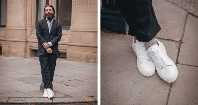 For those dressing up this Christmas Day, take inspiration from Ricki, he pairs his Mellor II in white calfskin with a navy suit and a light blue open-collar shirt - classic, polished, and effortlessly festive.