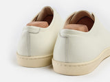 Buttery soft deerskin leather slip on your feet like your favourite pair of slippers, the leather feels good in your hand, smells good up your nose, and feels and looks good on your feet, a beautiful ivory white, not a blinding crystal white that will get dirty the moment you open the book. Beautifully simple, minimalist and refined whole cut, which we know is not simple to produce at all. Looks great with beach wear, jeans, shorts, I’m sure it would look good with frocks, skirts, palazzo pants for anyone who wears those kind of clothes. Essentially it will look good with anything you wear, probably even a tux.