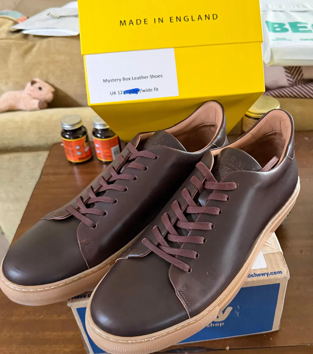 The thing about a mystery box is… you don’t know exactly what you’re going to get, but you do know how it’s made. Each box contains a pair of our handmade leather sneakers, boots or shoes, crafted in England using the same premium materials and construction methods we’re known for, including Horween Chromexcel leather and resoleable builds designed to last for years. Styles may vary, but the quality never does. And because you’re leaving the choice to us, each pair is offered at up to 60% off RRP.